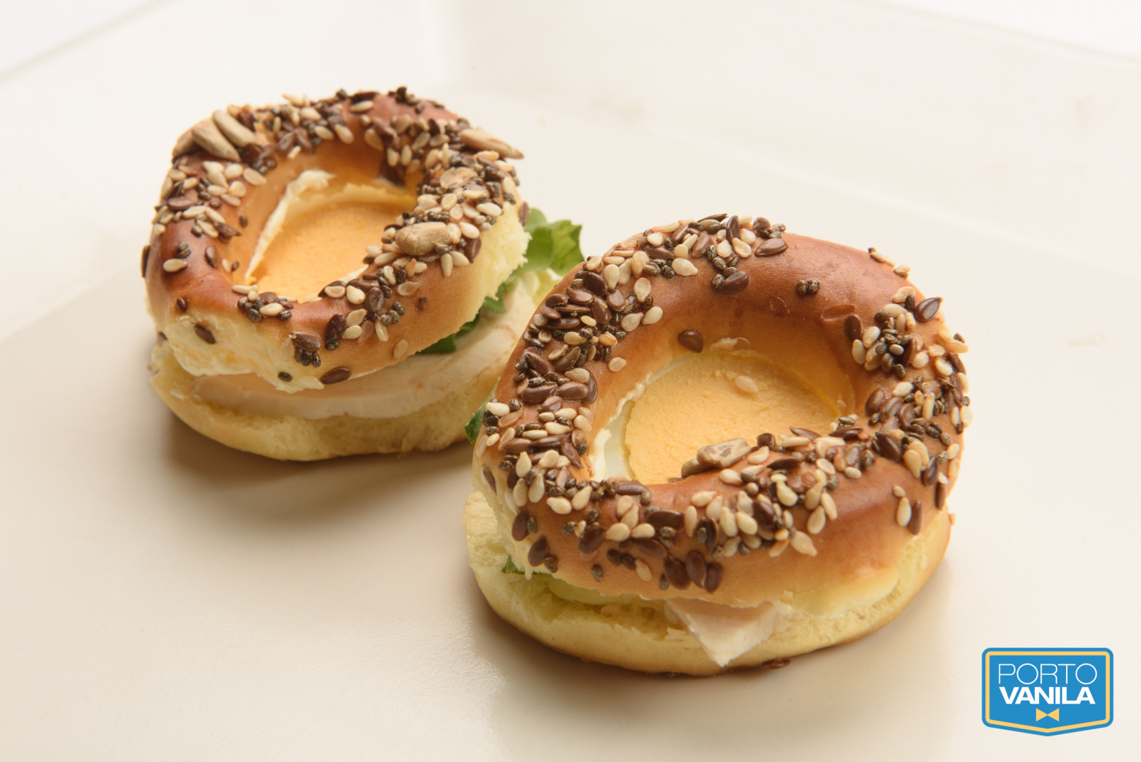 Bagel Pollo, huevo y rúcula – 12 unidades